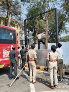 ది లీదర్స్ డైరీ : మాంజా దారానికి చిక్కుకుని విలవిలలాడుతున్న గద్దను హైదరాబాద్ బేగంపేటలోని ట్రాఫిక్ ట్రైనింగ్ ఇన్స్టిట్యూట్ చెట్టు కొమ్మలలో చిక్కుకుని ఉండగా రక్షించారు. అడిషనల్ పోలీస్ కమిషనర్ శ్రీమతి ఏ. లక్ష్మి, అదనపు ఉప పోలీస్ కమిషనర్, ట్రాఫిక్-1, మల్కాజ్గిరి మరియు జి. శంకర్ రాజు, సహాయ పోలీస్ కమిషనర్, ట్రాఫిక్, త్రిముల్ఘెర్రీ గమనించి చావు బ్రతుకుల్లో ఉన్న గద్దను మాంజ చెరనుంచి విడిపించారు. ట్రాఫిక్ పోలీసు సిబ్బంది సహకారంతో, గద్దకు మరింత హాని కలగకుండా ఎంతో జాగ్రత్తగా చెట్టుపై నుండి దింపి, దాని కాళ్లకు బిగుసుకుని ఉన్న నిషేధిత మాంజాను తొలగించి అవసరమైన సంరక్షణ అందించారు. అధికారుల మరియు సిబ్బంది యొక్క సమయోచిత చర్యల వల్ల గద్ద ప్రాణాపాయం నుండి తప్పించుకొని కొద్ది సేపటి తరువాత సురక్షితంగా ఎగిరిపోయింది…
