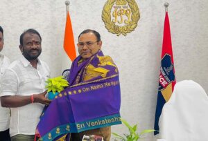 దిలీదర్స్ డైరీ ఫిబ్రవరి 19: రామగుండం నగర పాలక సంస్థ నూతన మేయర్గా ఇటీవల ప్రమాణ స్వీకారం చేసిన మహంకాళి స్వామి గురువారం రామగుండం పోలీస్ కమీషనరేట్ కార్యాలయంలో సీపీ అంబర్ కిషోర్ ఝా ను మర్యాదపూర్వకంగా కలిశారు. శాలువాతో సత్కరించి, పూల మొక్కను బహూకరించారు. నగరాభివృద్ధి, శాంతి భద్రతల పరిరక్షణలో పోలీస్ శాఖ పూర్తి సహకారం అందించాలని కోరారు. కమీషనర్ అంబర్ కిషోర్ ఝా.. మేయర్ మహంకాళి స్వామికి అభినందనలు తెలిపారు.